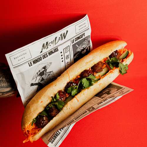 Boulettes croustillantes de poulet teriyaki , crudités façon do chua, coriandres, sauce du chef